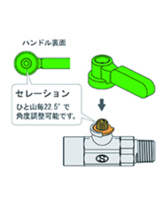 ■ハンドルを90度回転させることで流体を止めたり、流したりすることができます。(全閉又は全開状態で使用します。)