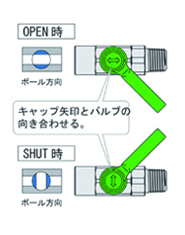 キャップの矢印どバルブの開閉方向