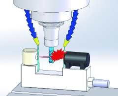 ■クーラント液の停止スイッチを押すと瞬時にノズルからクーラント液の噴出が停止します。