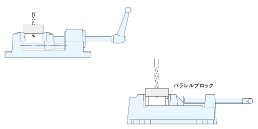 ボール盤加工用バイスは、主にタップとドリルを用いて穴加工を施します。
