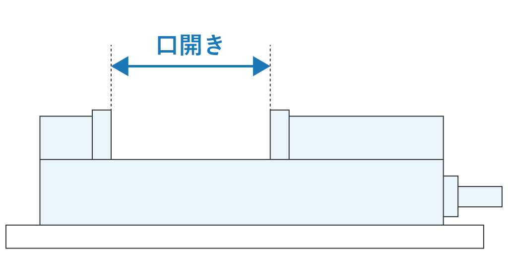 一般的な精密バイスは口幅と同様程度の口開きです。