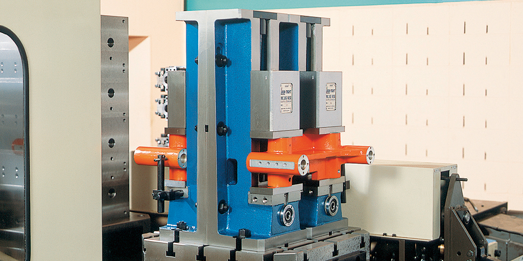 マシンバイスとは「ワークの位置決め機能」、「クランプ(メカ式・油圧式)機能」、「ベースへの取り付け、位置決め機能」をあわせ持つ汎用性に富んだジグです。