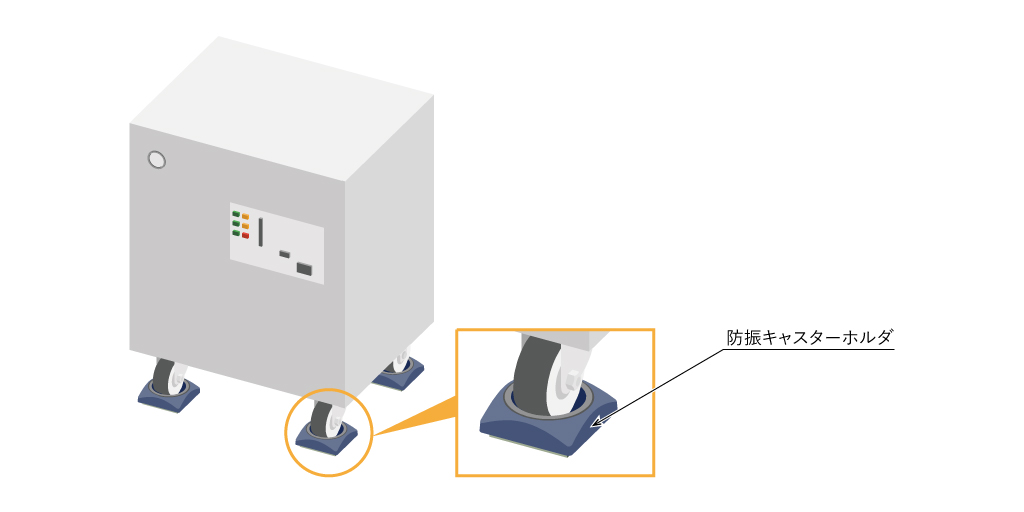 ただしジャッキ(アジャスタ)の対策とは違い、防振ゴムをただ設置するだけでは装置が動いてしまうため、キャスター止めもしくはホルダのようなキャスターが動かない形状のものを選ぶ必要があります。