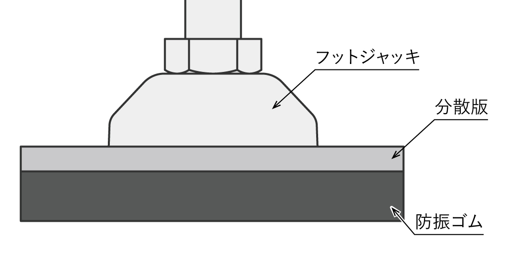 ただし振動対策の効果を得るためには、防振ゴム全体に荷重がかからないと効果が得られません。