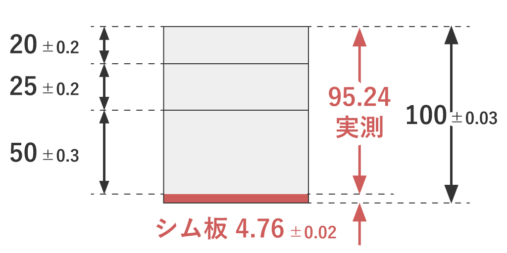 シム式とは、積み上げ後の最終精度を1枚のシム(プレート)で調整するものです。