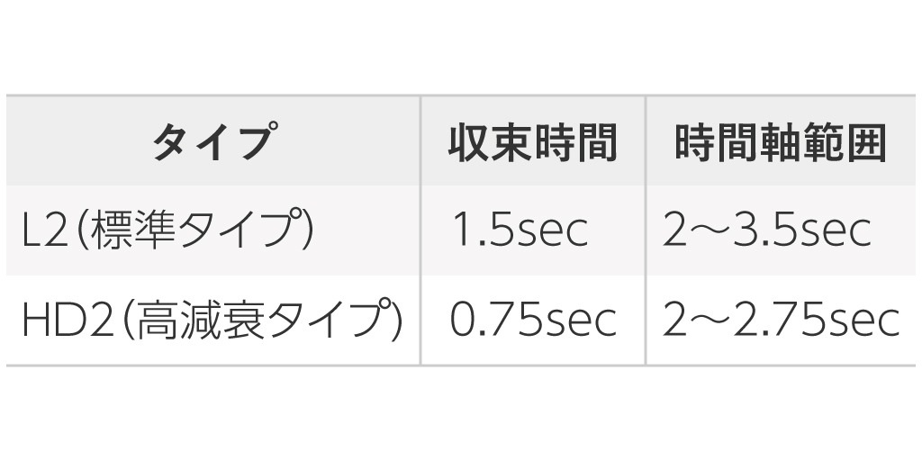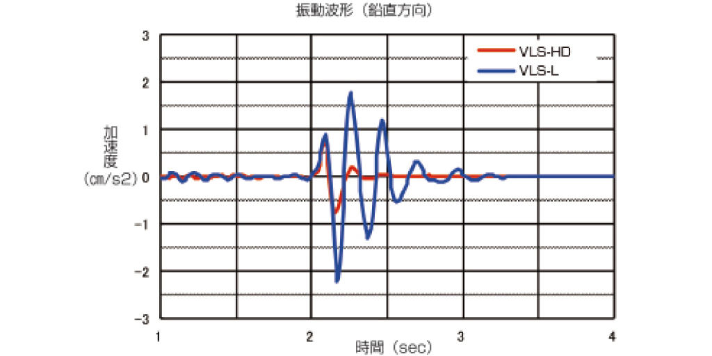 - コイルスプリングタイプの弱点である「揺れやすい」に対応したマウント(HD)により、防振ゴム同等の揺れの収束の速さを実現(表1・グラフ1)。