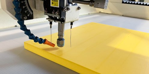 ウォーターカッターによる防振パッドの形状加工、マシニングによる取付部品の加工を対応いたします。