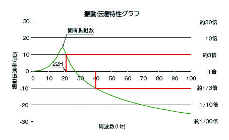 たとえば、定盤の振動が床振動に対し10倍のとき、20log(10)=20(dB) と表します。 -