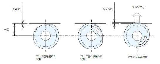 垂直・水平方向に発生する力により、ワークの浮き上がり防止に効果的です。
